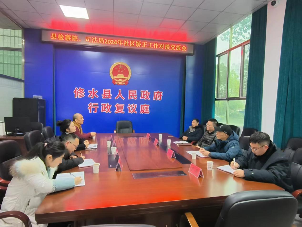 为强化社区矫正检察监督,促进社区矫正执法规范化、法治化,提升社区矫正工作质效,近日,修水县人民检察院党组副书记、副检察长曾亮带领刑事执行检察干警一行来到修水县社区矫正中心,同县司法局召开2024年社区矫正工作对接交流会。县司法局分管领导胡优丰,负责社区矫正工作人员参加会议。