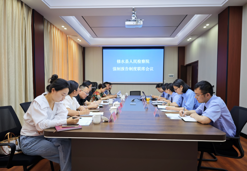 为进一步推动强制报告制度落地见效,切实加强未成年人综合保护,2025年5月27日上午,在“筑牢强制报告防线 守护未成年人成长”强制报告宣传月期间,修水县检察院组织召开落实侵害未成年人强制报告制度联席会议,会议由党组成员、副检察长涂丹主持,县监委、县公安局、县教体局、县司法局、县卫健委、县民政局、团县委、县妇联等成员单位有关负责同志参加会议。