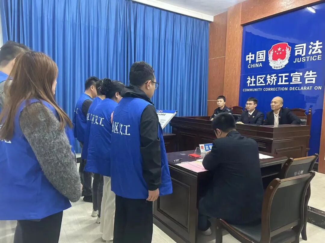 参加社区矫正对象入矫宣告仪式。在县司法局开展的入矫集中宣告活动中,检察干警深入剖析近期被人民法院依法撤销缓刑收监执行的典型案例,对矫正对象开展法治教育,为新入矫人员敲响警钟。