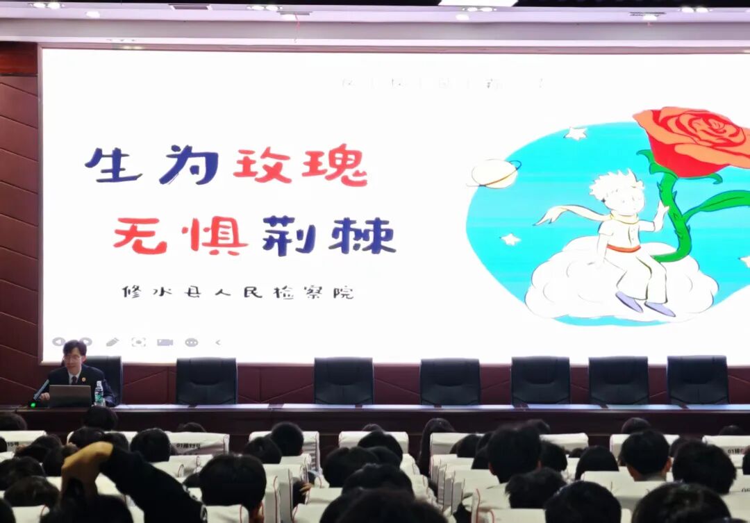 近日,修水县人民检察院检察干警至县中专开展法治宣讲活动,以“生为玫瑰 无惧荆棘”为题开展防范校园欺凌讲课。